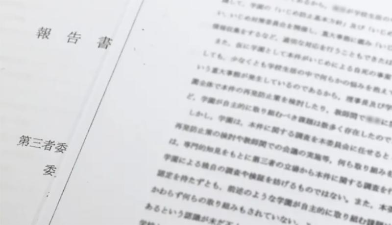 学校設置の第三者委員会が翌18年11月19日に「いじめが自死の主たる要因」とする報告書をまとめたが、学校側が受け入れないまま2年が近づく。学校側は今月12日を期限とした共同通信の質問状に回答せず、遺族は事態進展を切望している。
