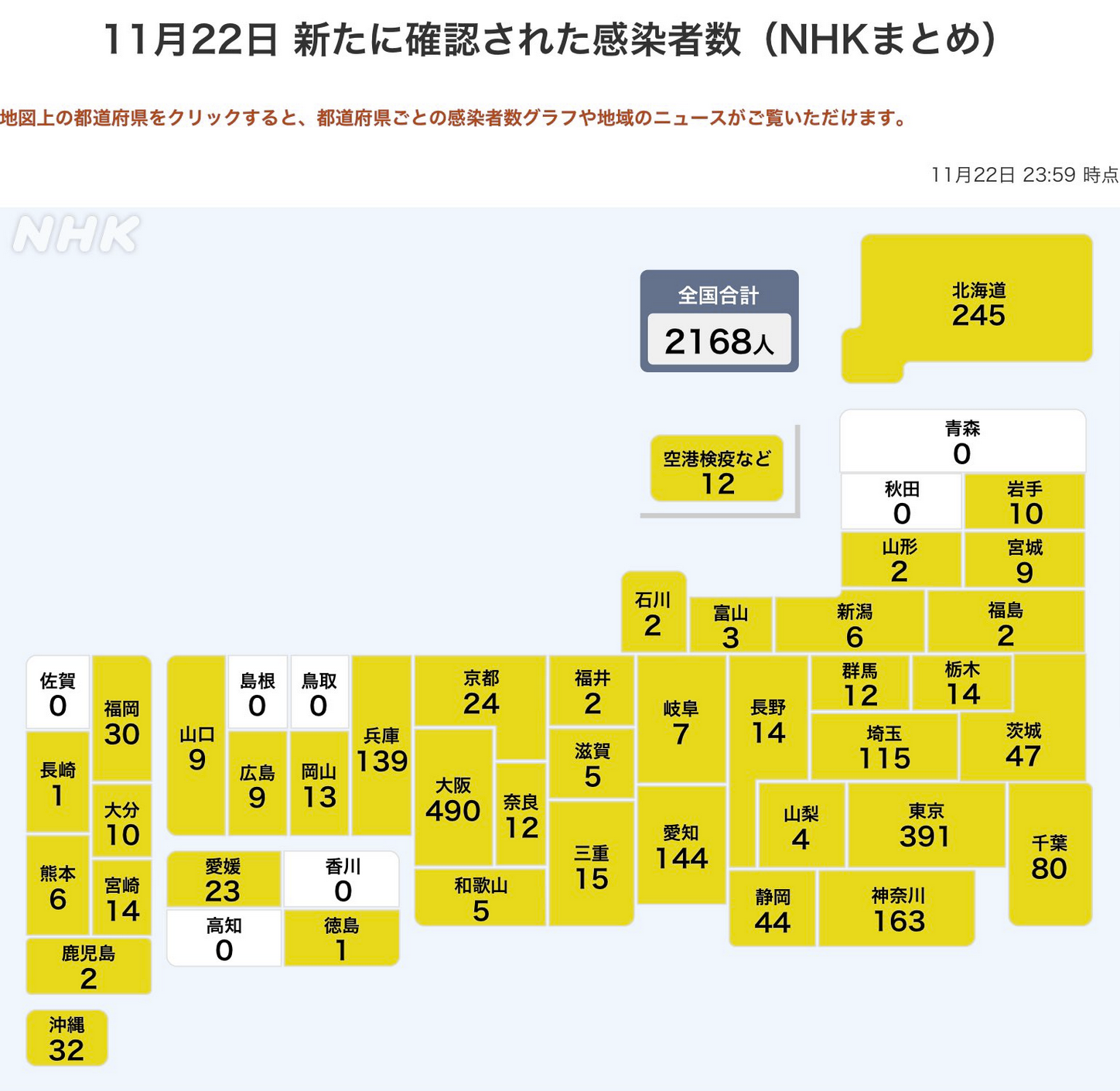 もう明らかに見てわかるように感染者が全国に拡大していてゼロだった県は7県だけです。