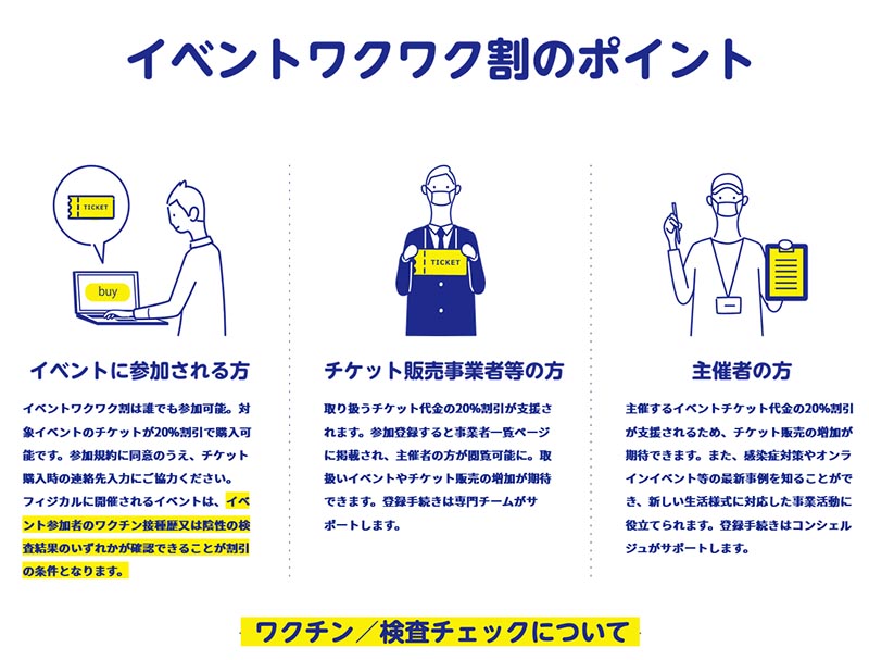 政府は、経済とコロナ対策の両立を目指し、ワクチン接種を受けた人にイベントの割引などを適用する「ワクワクイベント」という事業を検討していることがわかった。
