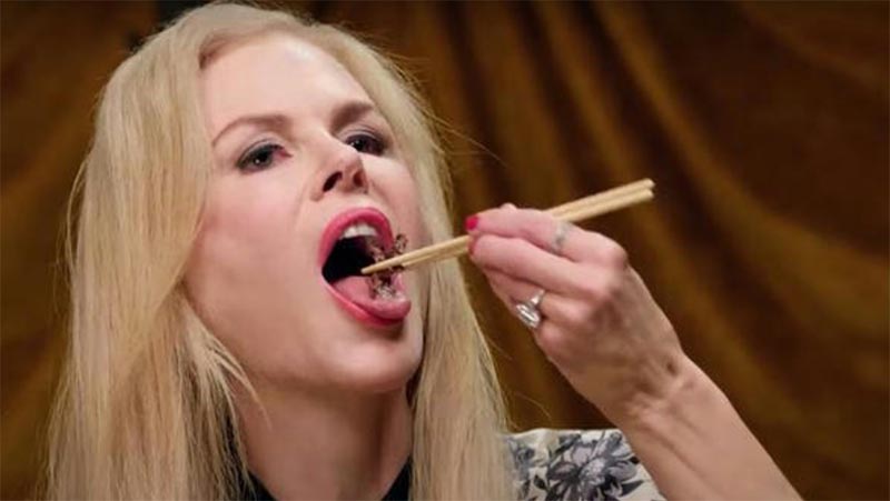 まず、ニコール・キッドマン[Nicole Kidman]が「マイクロ家畜」と呼ぶ生きた昆虫を食べている不気味なビデオである。