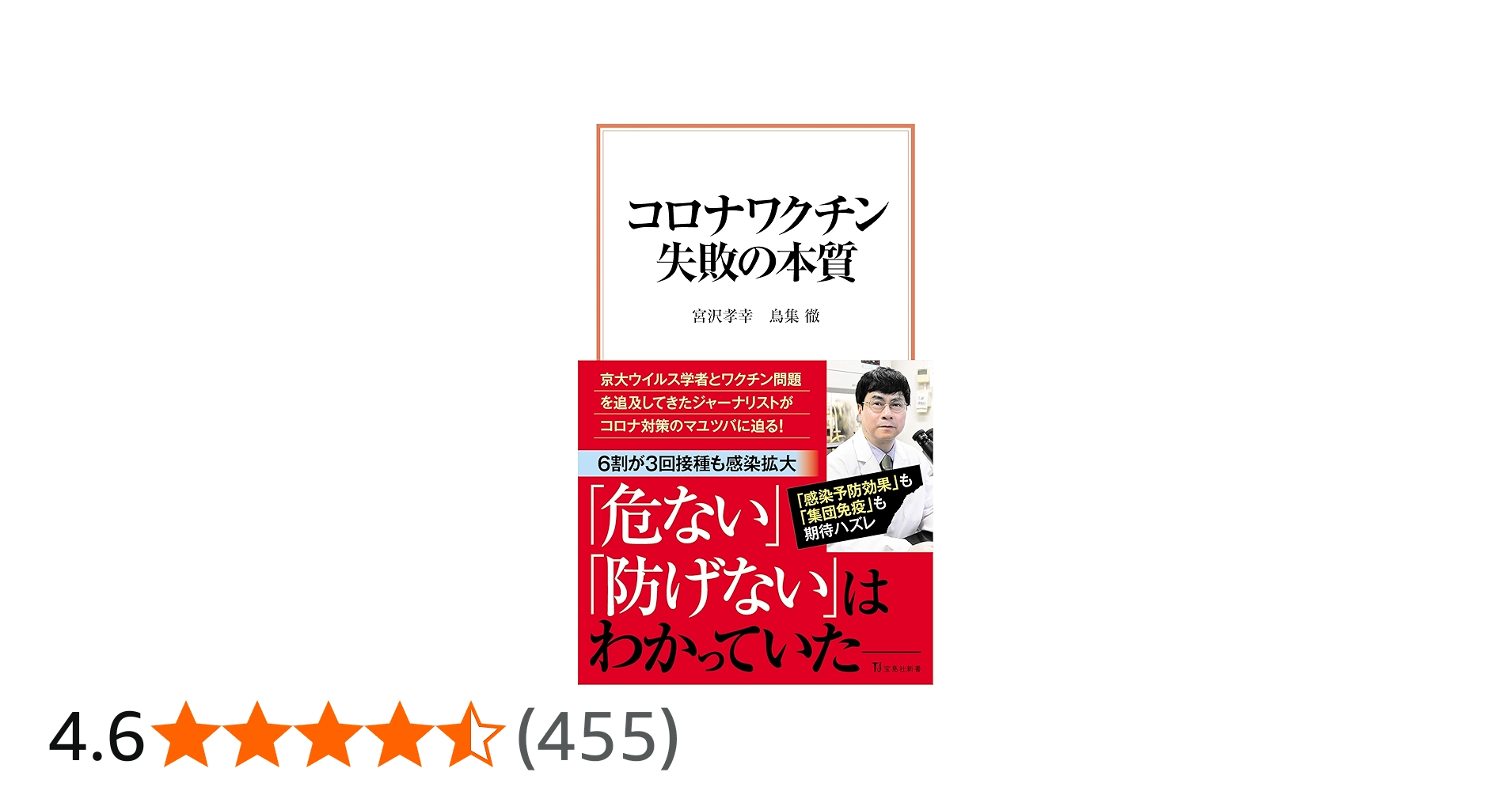 ここでは、京都大学医生物学研究所ウイルス共進化分野准教授の宮沢孝幸氏と、ジャーナリストの鳥集徹氏が、コロナワクチンの“真相”に迫った著書『 コロナワクチン 失敗の本質 』(宝島社新書)から一部を抜粋。宮沢氏と鳥集氏が、コロナワクチンの重症化予防効果に疑問を呈した内容を紹介する。(全2回の1回目/ 2回目に続く )