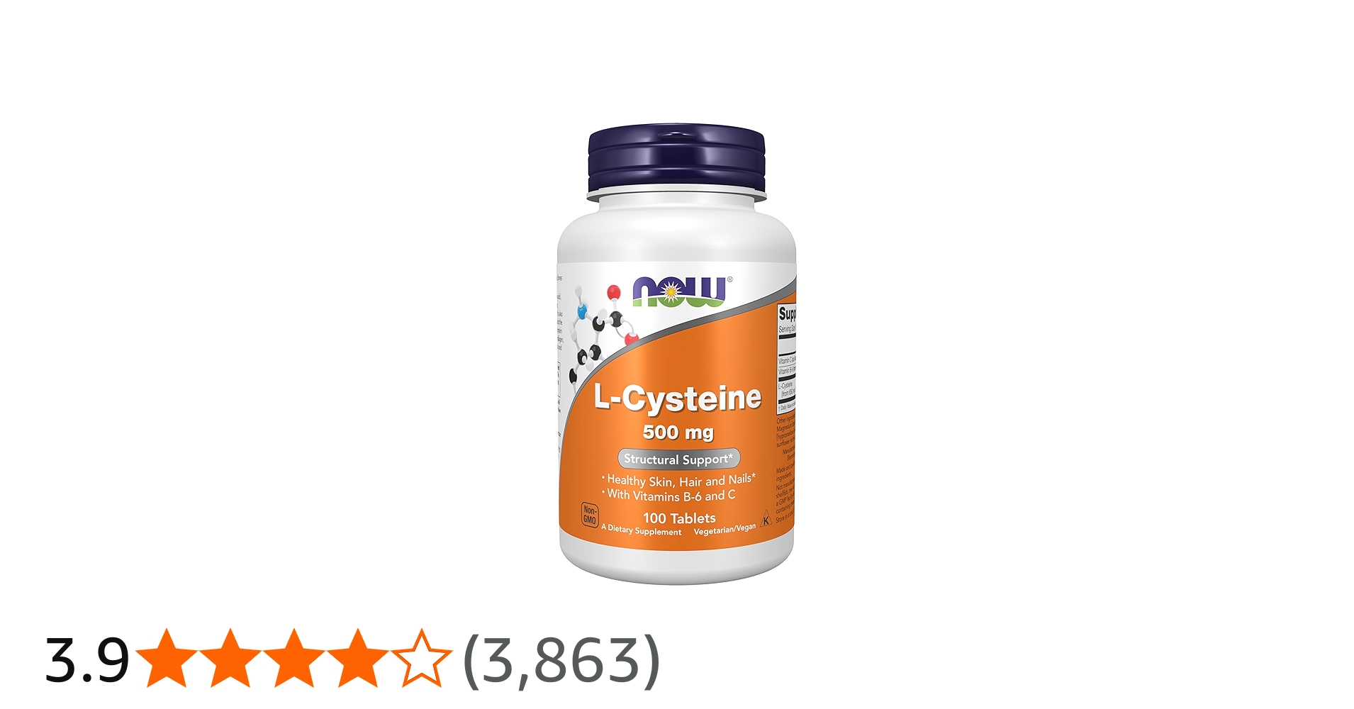 Size: 100 Tabs NOW? L-Cysteine is a non-essential amino acid that is an important component of hair, nails and the kerat...