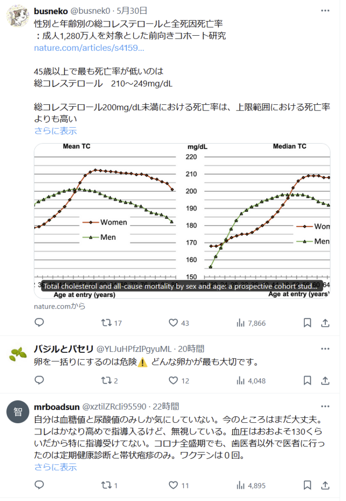 コレステロールの嘘と闇 スポンサーリンク 健康問題 X Facebook はてブ LINE コピー 2024.05.31 スポンサーリンク コレステロールの嘘と闇 病院と製薬会社が儲かるためにある高コレステロール血症という嘘 ⚡コレステロールの嘘と闇卵は1日1個しか食べちゃダメは大嘘‼️卵を1日10個1ヶ月食べてもコレステロールは上がりません。食事で沢山コレステロールを摂ると体内でつくられるコレステロールが減るから変化はない。コレステロールは高いほどよい、… pic.twitter.com/lHo75kFEaS— ルパン小僧🍑💍kuu222 (@kuu331108) May 30, 2024