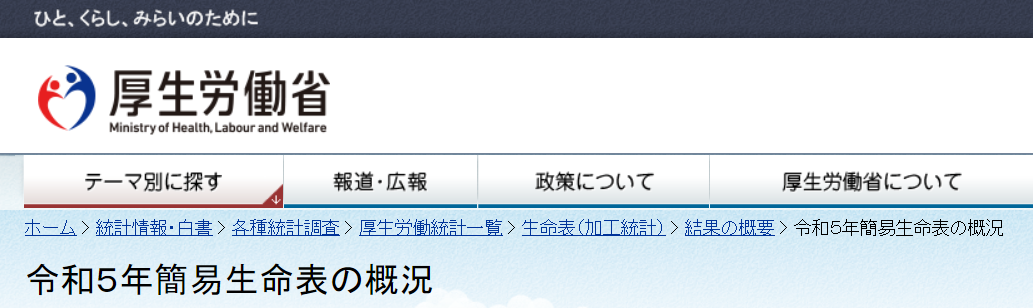 厚労省のホームページに平均寿命のグラフが掲載されていました↓