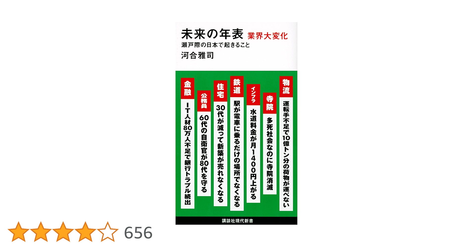 ベストセラー『未来の年表 業界大変化』は、製造・金融・自動車・物流・医療などの各業界で起きることを可視化し、人口減少を克服するための方策を明確に示した1冊だ。