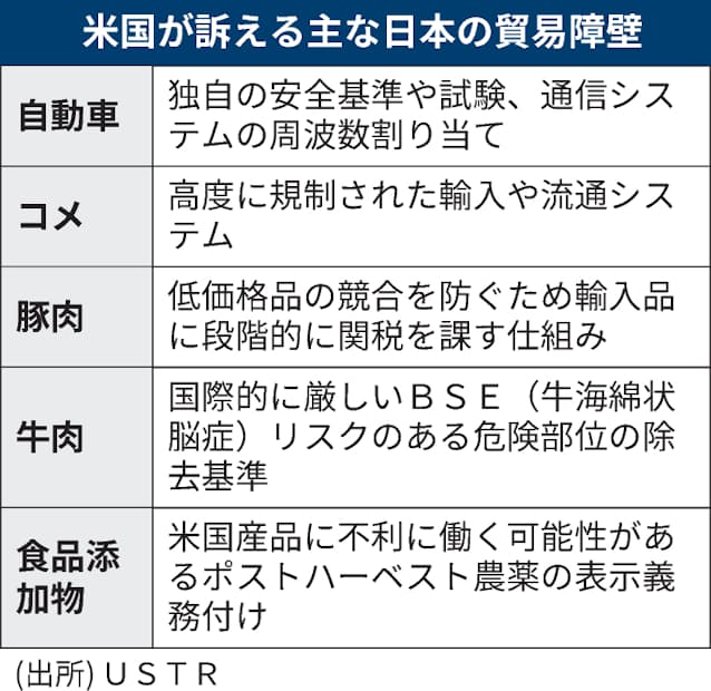 米トランプ政権は米国企業が日本市場で事業展開するうえでの様々な規制や商慣行を問題視する。ホワイトハウス高官は日本を「構造的な(非関税)障壁が高い」と名指しした。日本政府は「今後明らかになる措置の具体的な内容や影響を精査する」(林芳正官房長官)との立場で当面は情報収集を急ぐ。