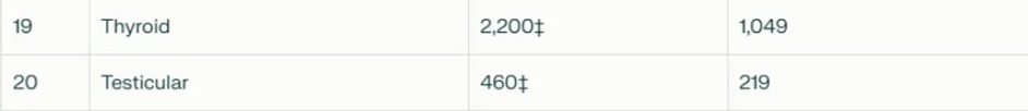 ・‡ 2020 年のデータが不完全な場合の推定値、SEER 2025 予測および CDC の過去の傾向から算出