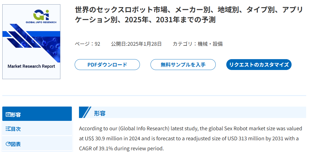 Global Sex Robot Market 2025 by Manufacturers, Regions, Type and Application, Forecast to 2031 – GlobalInfoResearch