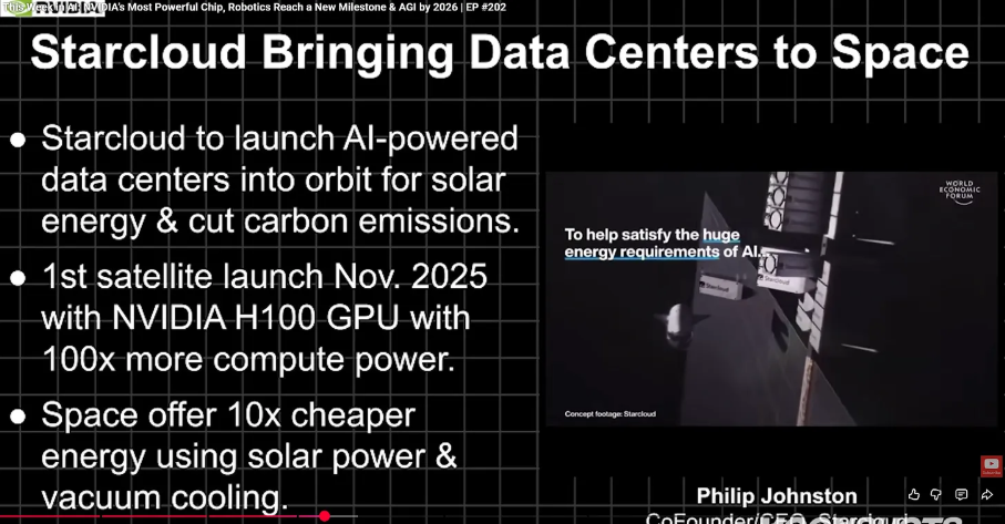 マスク氏は下記のインタビューで、太陽のエネルギーがAI計算に活用され、最終的にはエネルギー消費量が膨大になるため、銀河系の中心部のエネルギーが必要になると説明しています。現時点では、宇宙空間における太陽光発電によるデータセンターは現実のものとなっています。