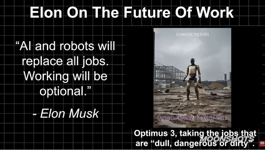 エマド・モスタック氏は、今後 1000 日間で、すべての仕事が AI とロボットに取って代わられ、資本主義の概念は終焉を迎えると予測しており、イーロン・マスク氏も、労働力としての人間はもはや存在しなくなるだろうと述べています。