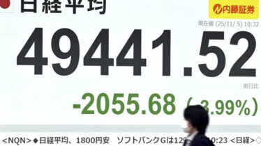 日経平均株価、一時5万円下回る 下げ幅2000円超す外国人投資家の利益確定売りが原因か?5日の東京株式市場で日経平均株価が急落し、一時5万円を下回った。下げ幅は2000円を超える場面があった。前日の米株市場でハイテク株が調整した流れを引き継...