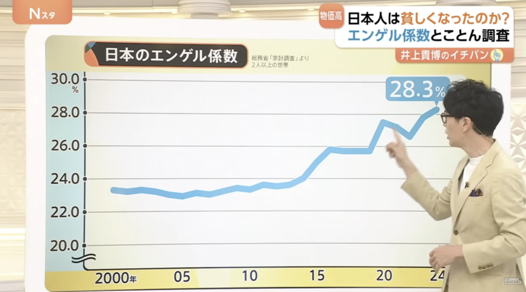 国民の2024年のエンゲル係数が28.3%に達し、2025年はおそらく30%を越えて