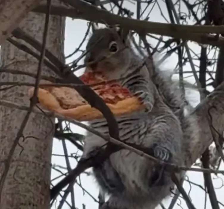目撃されたリスは、店から盗み出したパイを、悪びれることなく、店の目の前で食べていた。