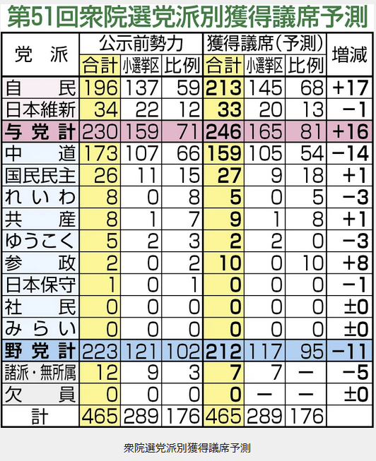 衆院情勢分析では与党過半数越えとなっているが・・・