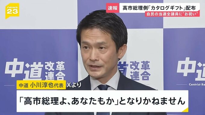 この件を受けて、中道の小川淳也代表はXを更新し「『高市総理よ、あなたもか』となりかねません。財源も含め厳しく説明責任が問われる新たな事態です。」とコメントしました。