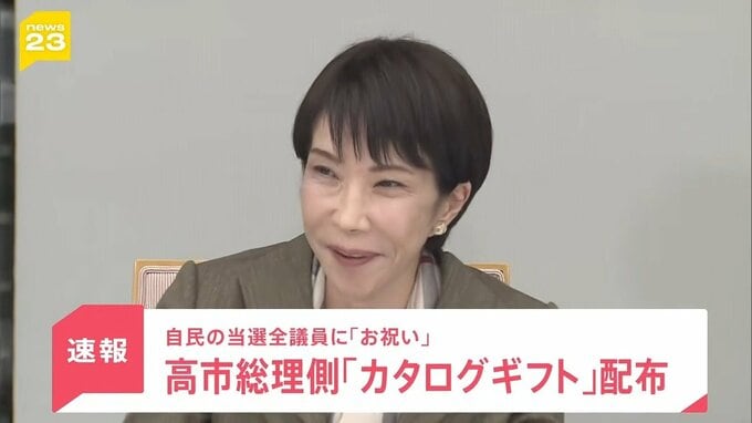 高市総理側 当選祝い名目で数万円相当のカタログギフト配布