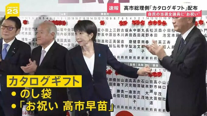 高市総理側が自民の当選全議員に数万円相当カタログギフト配布 「お祝い」と説明