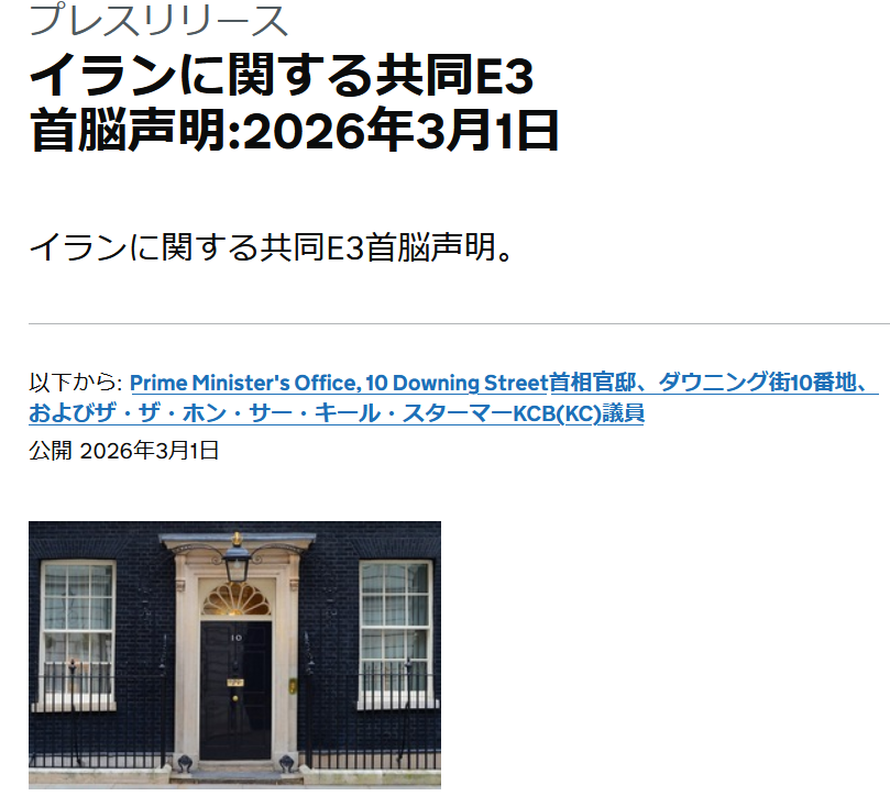 E3諸国首脳は、イランが地域諸国(当初の米・イスラエル軍事作戦に関与しなかった国々を含む)に対して行った無差別かつ過剰なミサイル攻撃に衝撃を受けている。イランの無謀な攻撃は我々の緊密な同盟国を標的とし、地域全域で我々の軍人及び民間人を脅かしている。