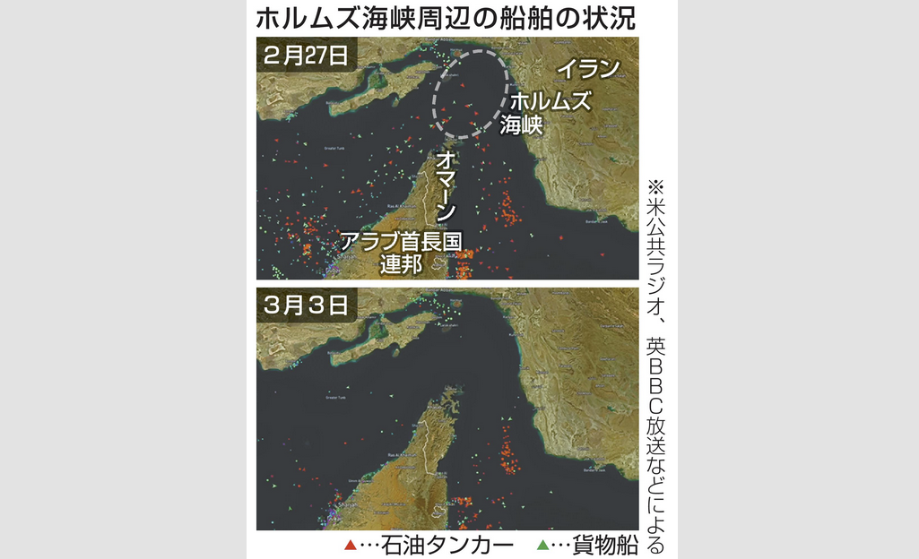 日本の石油輸入の約8割はホルムズ海峡を経由していて、封鎖されると影響は避けられません。