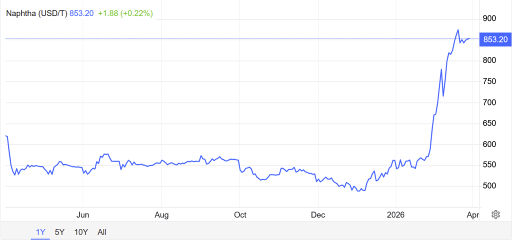 それとは関係なく市場のナフサの価格が急騰しているようです。