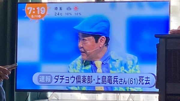 お笑いグループ「ダチョウ倶楽部」のメンバーでお笑いタレントの上島竜兵さんが11日未明、東京都内で亡くなりました。61歳でした。