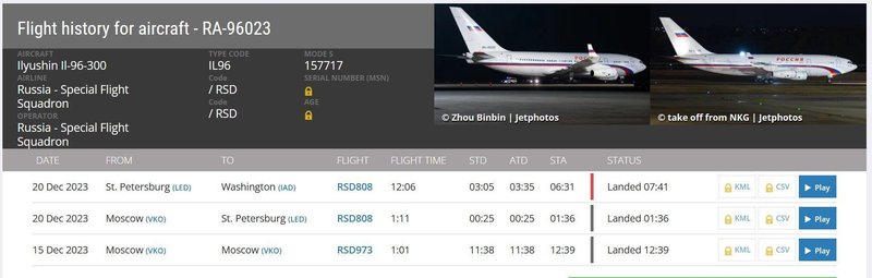 これがロシア代表団をワシントンDCに運んだ航空機である:
