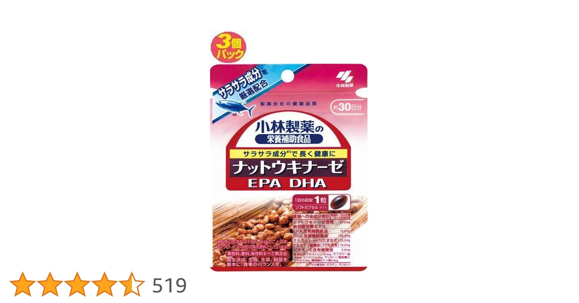 小林製薬の栄養補助食品ナットウキナーゼ30粒」は、ナットウキナーゼ(納豆キナーゼ)やDHA、EPAを配合したサプリメントです。1粒当たり、ナットウキナーゼ含有納豆菌培養エキスを15.0mg含有しています。飲みやすいソフトカプセルタイプ。 内...