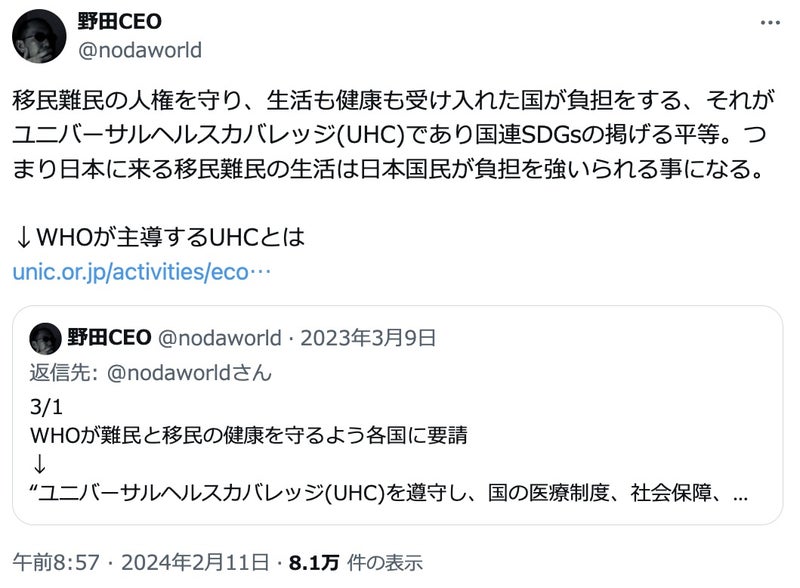 今まさに移民の医療や生活を日本国民が負担している状況です。