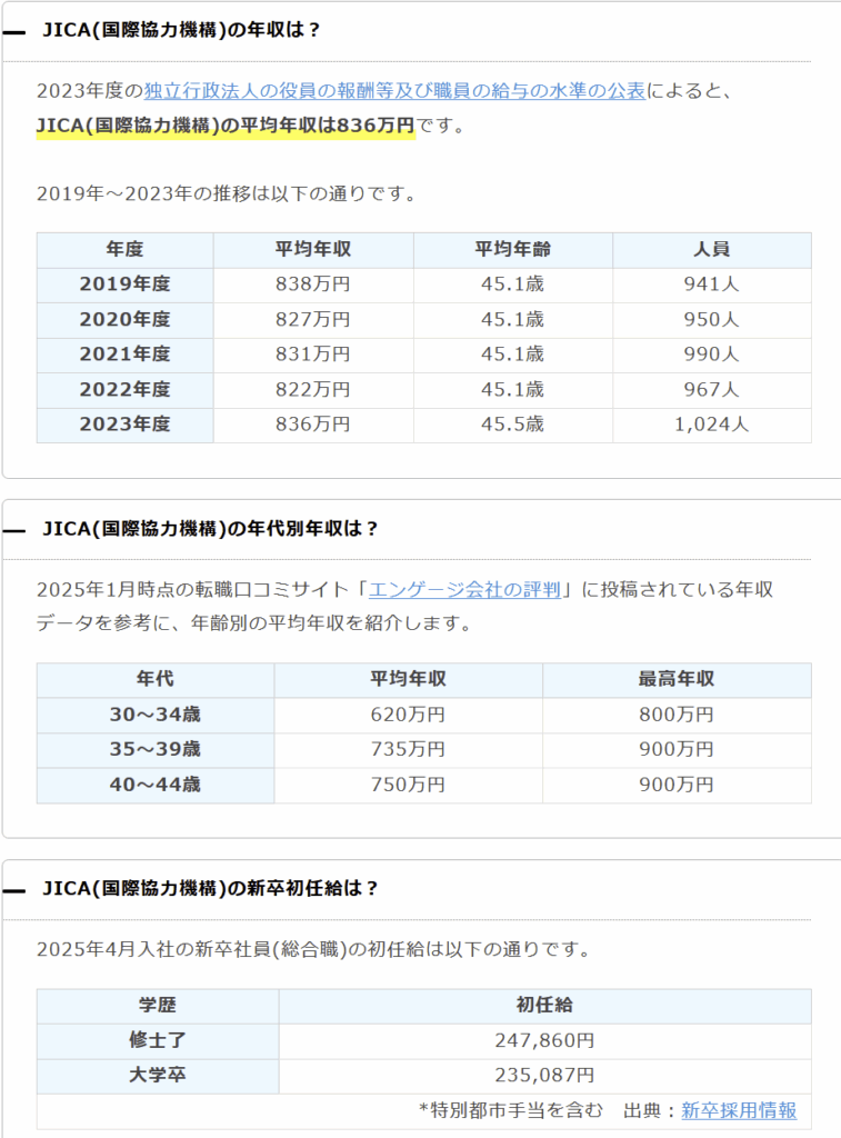 ちなみにJICAの平均年収は下記のようです。