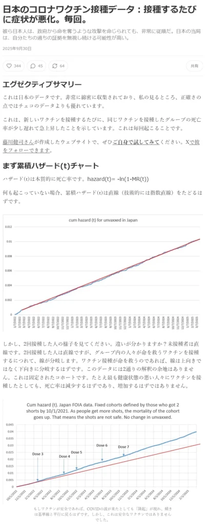 日本の新型コロナワクチン接種データ:追加接種を何度受けたとしても、状況は悪化する一方だ。何度接種しても同じだ。
