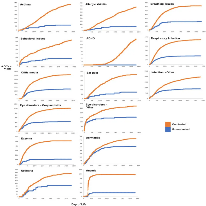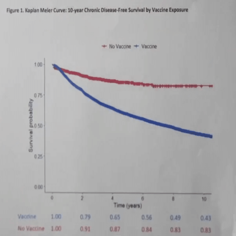 簡単に言えば、この研究は、ワクチン接種を受けた子どもは、受けていない子どもに比べて、10年後に慢性疾患を発症する可能性が3倍以上高いことを示した。