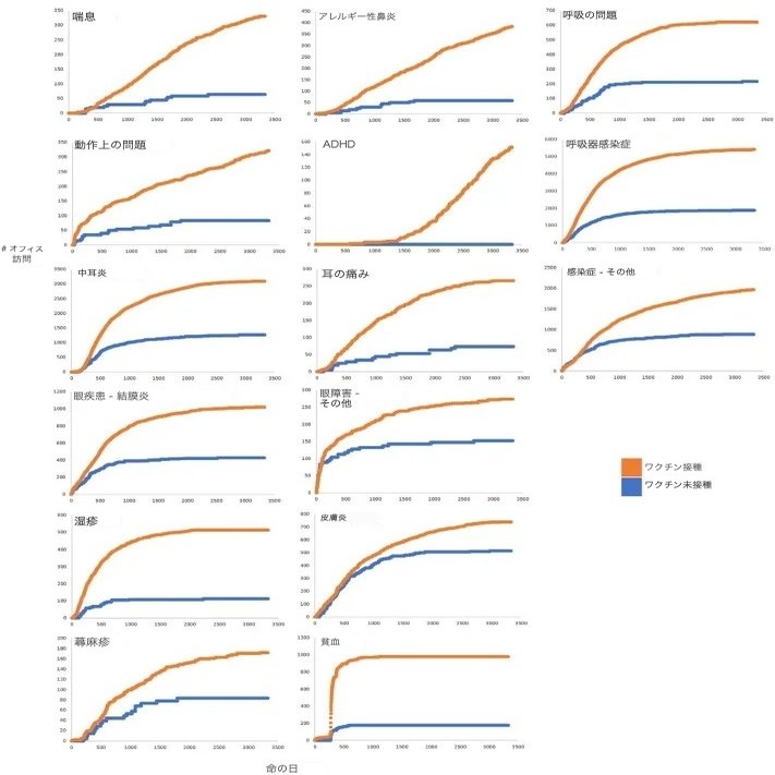 • ワクチン接種を受けていない約 2,000 人の子どものうち、ADHD、糖尿病、行動障害、学習障害、知的障害、チック、その他の精神障害の症例はゼロでした。