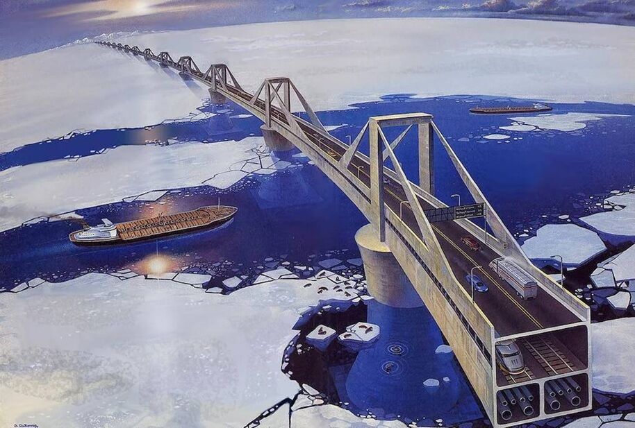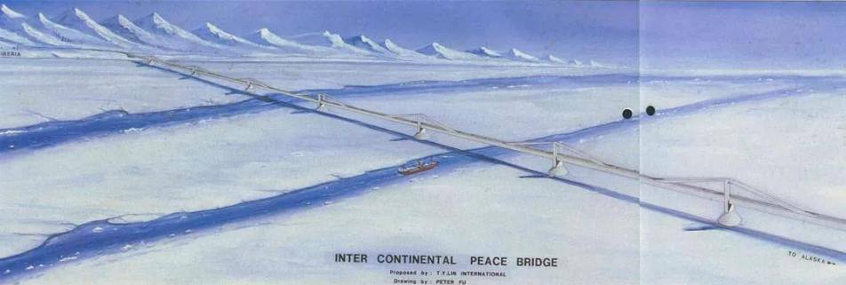 1958年、中国系アメリカ人技術者であるトン・イェン・リン氏は、ベーリング海峡に橋を架ける計画を提案しました。その目的は「アメリカ合衆国とソビエト連邦の国民間の貿易と相互理解を強化すること」でした。1986年には、同氏が「大陸間平和橋」プロジェクトをロナルド・レーガン米国大統領にプレゼンテーションしました。彼は橋の建設費を10億ドルと見積もりましたが、1994年には40億ドル以上に修正しました(写真1、4、5)。