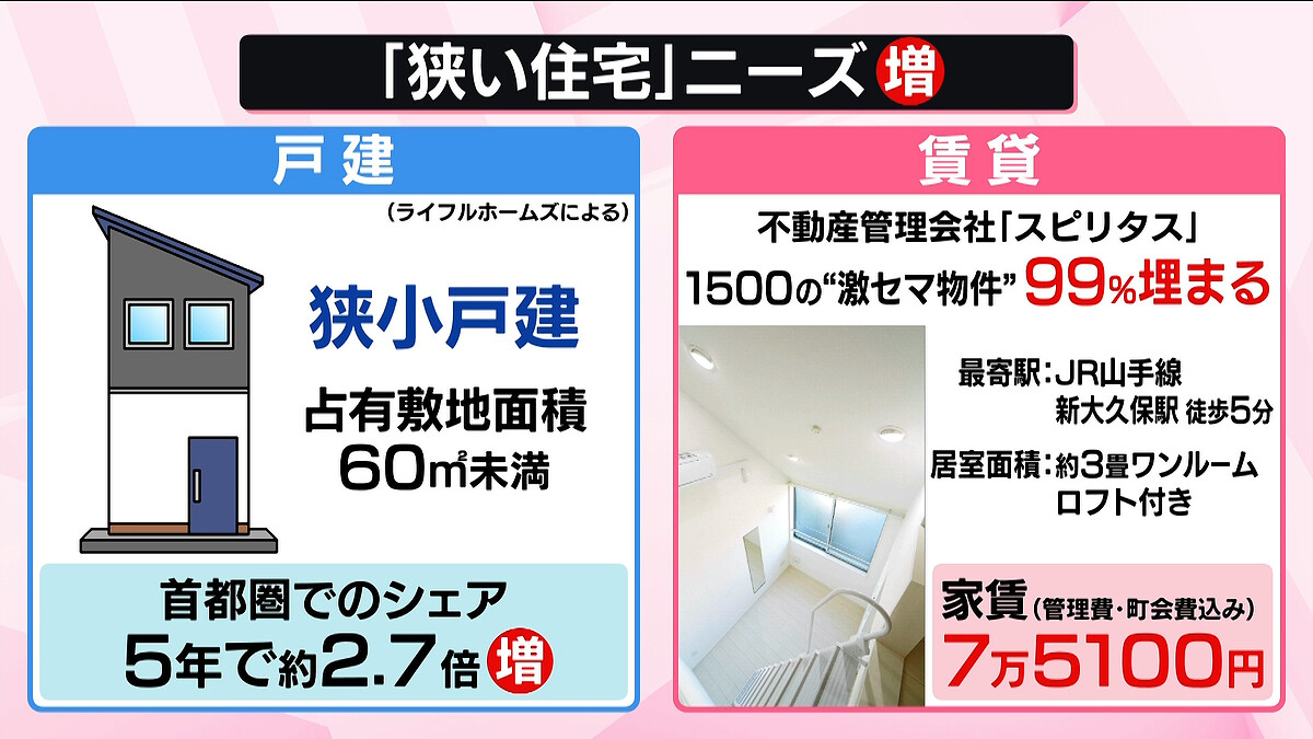 「『もう高くて住めない…』という新宿や渋谷などで、狭かったらなんとかなるというところが人気だということです。タイムパフォーマンス(タイパ)重視で、職場や通学先から近くに住むというような様々な利用法があるそうです」