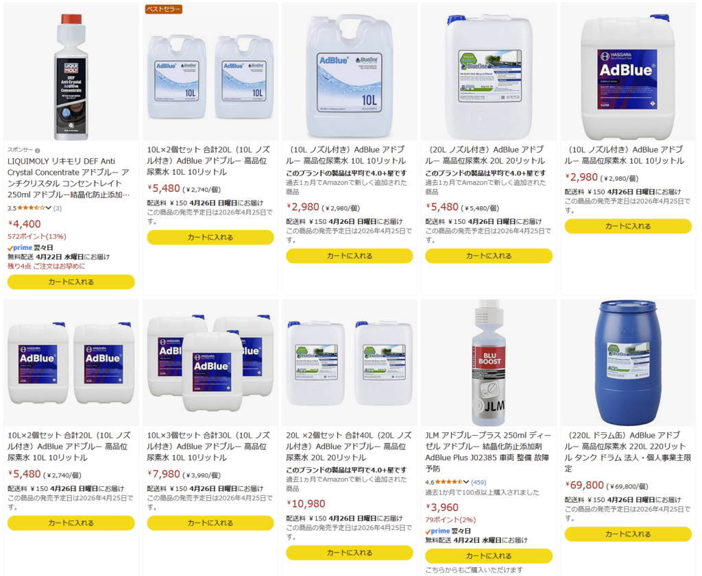 2026年4月現在、アドブルー(AdBlue)は輸入尿素の停滞により、特に小口容器を中心に「在庫なし」や「出荷制限」が続く厳しい供給状況。